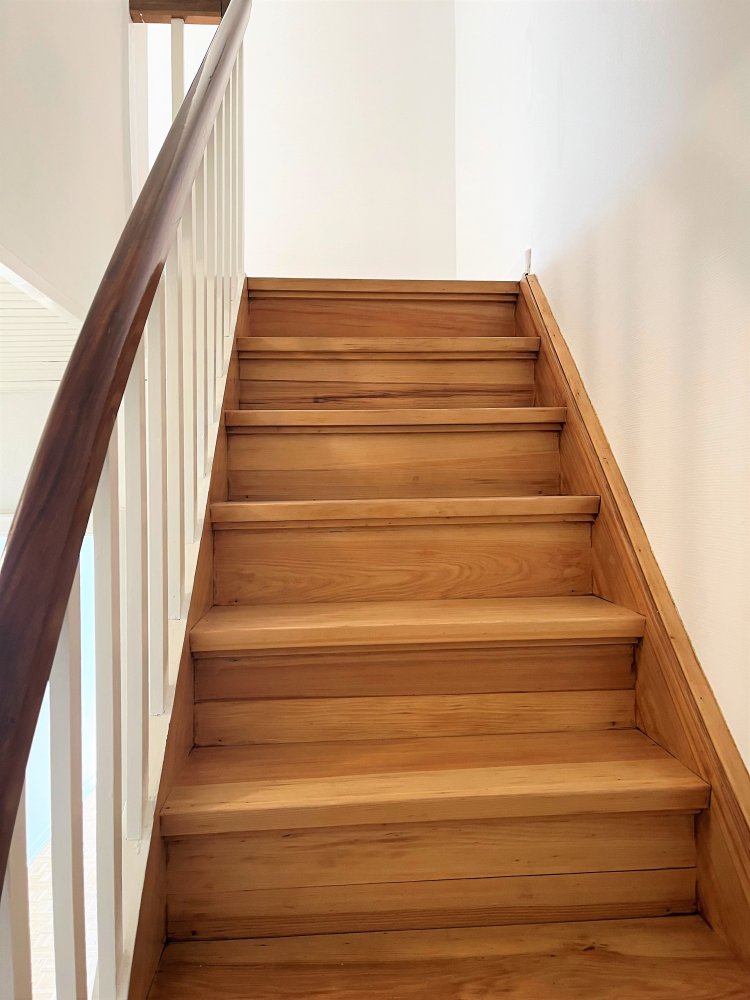 Über die schöne Holztreppe mit dem dunklen Handlauf geht es in die 1. Etage. Erfreulich ist, dass hier keine Dachschrägen vorhanden sind und die drei Schlafzimmer auf dieser Ebene ohne entsprechende Einschränkungen möbliert werden können. Mögen Sie lieber duschen oder baden? Hier geht beides, denn im schicken Vollbad wurden an der Wanne auch eine Regendusche und eine Echtglasduschabtrennung installiert. Wie schon im Gäste-WC sorgt ein Fenster für optimale Belichtung und Belüftung. Und es geht noch weiter nach oben und zur Gemütlichkeit unterm Dach. Ein großer Schlafraum ist dort zu finden und ein kleines Arbeitszimmer. Außerdem ein praktischer Abstellraum. Ganz oben kann im Spitzboden zudem einiges verstaut werden. Noch mehr Platz für dieses und jenes gibt es im Vollkeller des Hauses. Dort können Sie auch Ihre Waschmaschine aufstellen. Und ein Glasfaseranschluss ist ebenfalls schon vorhanden.